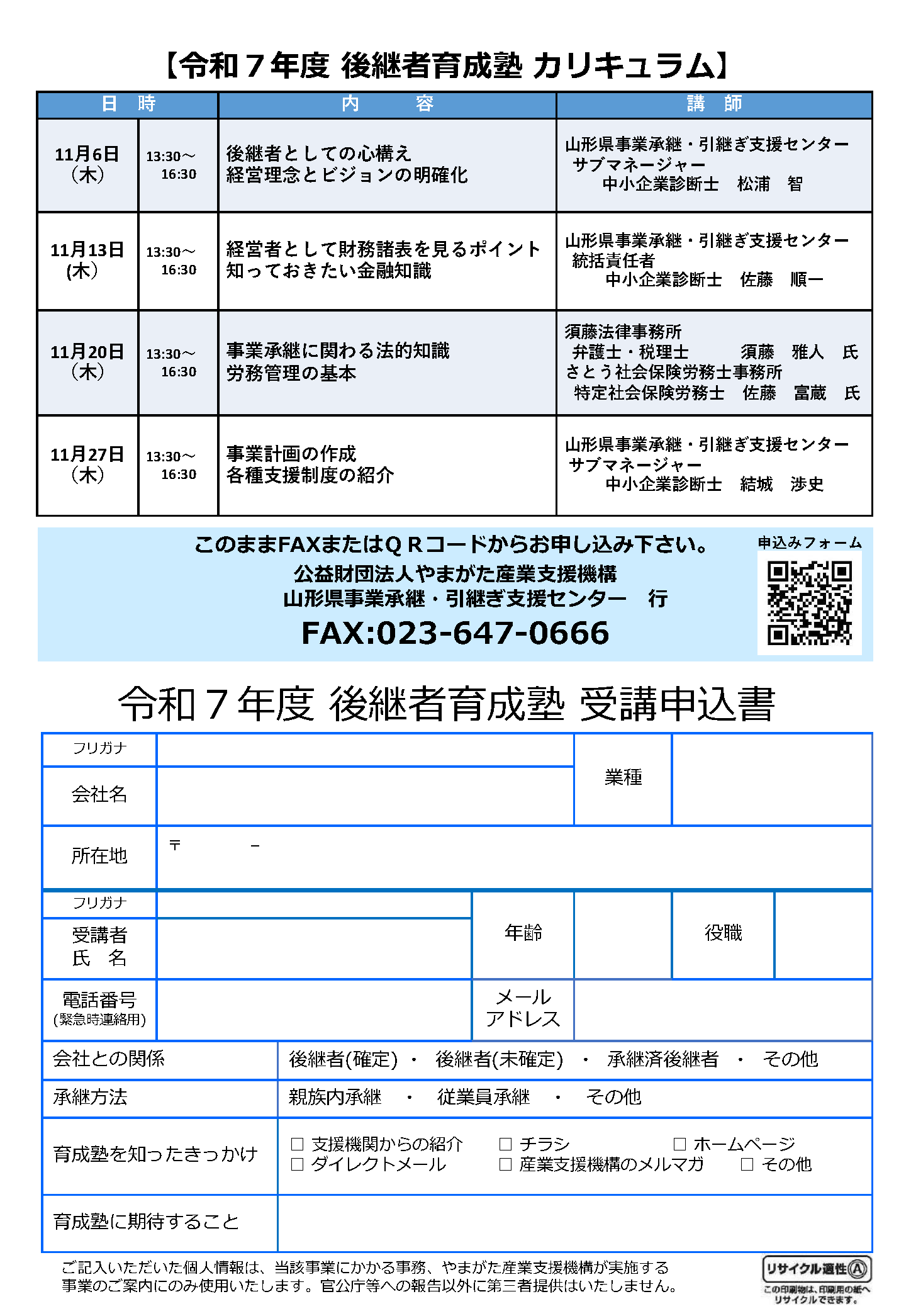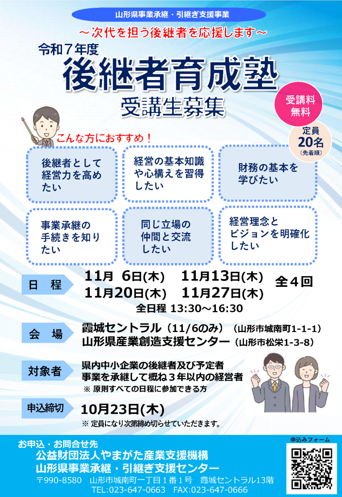 セミナー/研修2025.11.07山形県事業承継・引継ぎ支援センターの『後継者育成塾』で講師を担当しました